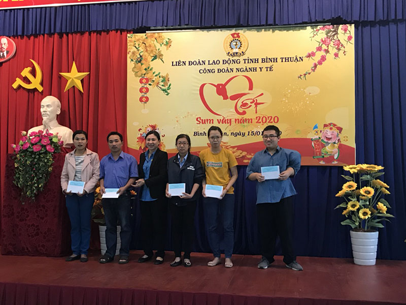 Để tạo điều kiện thuận lợi cho Công nhân lao động, Ban Thường vụ Công đoàn ngành Y tế đã tổ chức Chương trình “Tết Sum Vầy”, gặp mặt, thăm hỏi và trao quà cho 01 chị mắc bệnh hiểm nghèo, 20 cháu là con công nhân lao động có hoàn cảnh khó khăn cùng 32 công nhân lao động có hoàn cảnh khó khăn đang làm việc trên địa bàn thành phố Phan Thiết. Còn 28 trường hợp còn lại ở các huyện thì Thường trực Công đoàn ngành Y tế phối hợp cùng với Đoàn công tác của Sở Y tế đi thăm, chúc Tết và tặng quà, với trị giá mỗi phần quà là 500.000đ (Riêng phần quà của các cháu là 300.000đ/cháu).