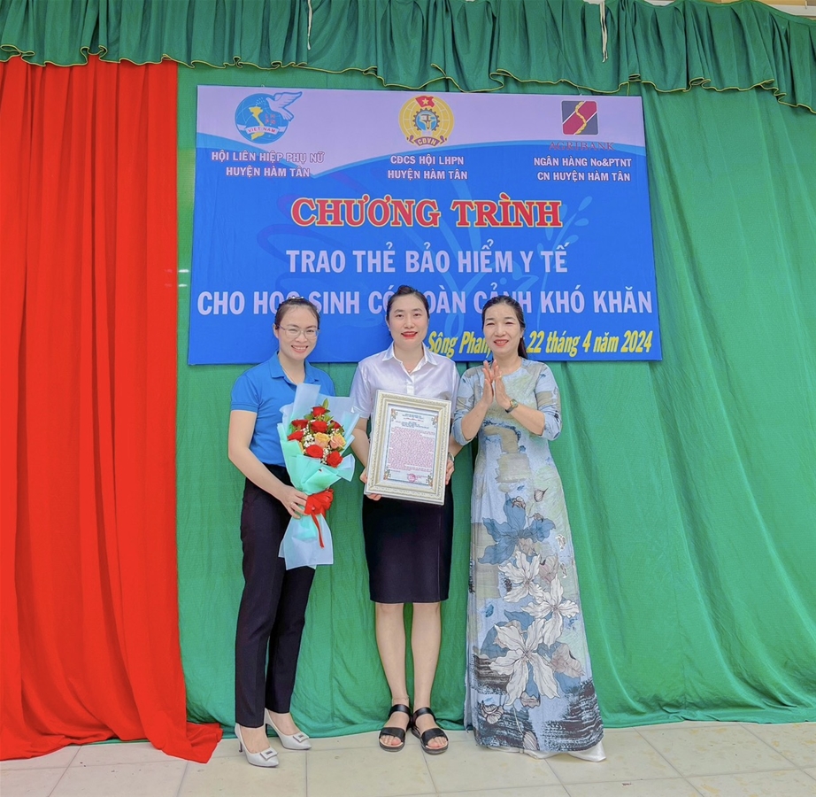 Nhằm thiết thực lập thành tích chào mừng các ngày kỷ niệm của quê hương, đất nước, CĐCS Hội LHPN huyện Hàm Tân đã tổ chức các hoạt động như: Tổ chức hoạt động về nguồn cho đoàn viên và con em đoàn viên công đoàn tại khu du lịch núi Tà Cú và tổ chức trao tặng 28 thẻ BHYT cho các em học sinh tại Trường TH Sông Phan 1 với kinh phí 5.078.000đ.